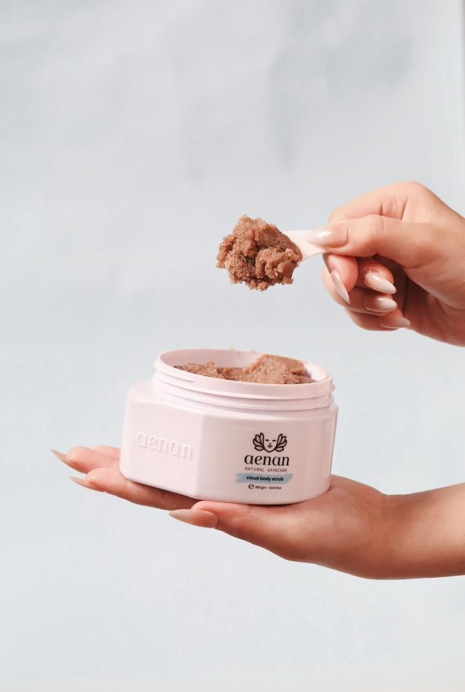 تبلل البشرة بالماء و يوزع المقشر على كامل البشره